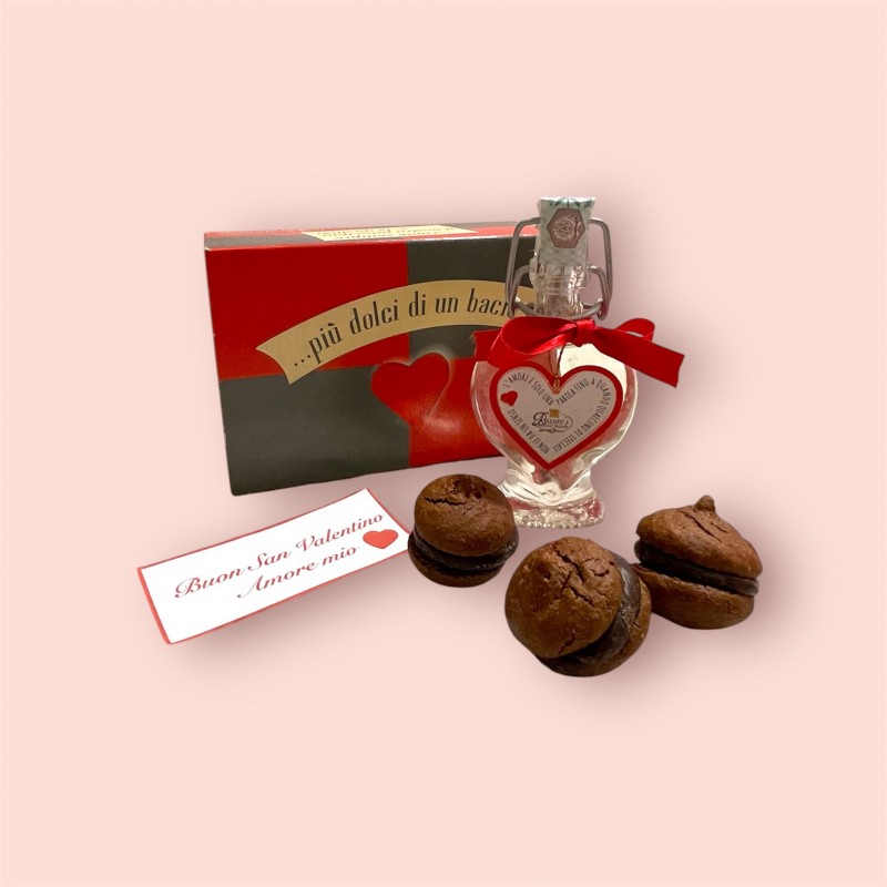Il cofanetto di Baci di Alassio edizione limitata per San Valentino è sicuramente un omaggio elegante e goloso, mentre il mignon di liquore grappa aggiunge quel particolare in più, ideale per chi apprezza un buon distillato. È un mix perfetto di romanticismo e sofisticatezza!